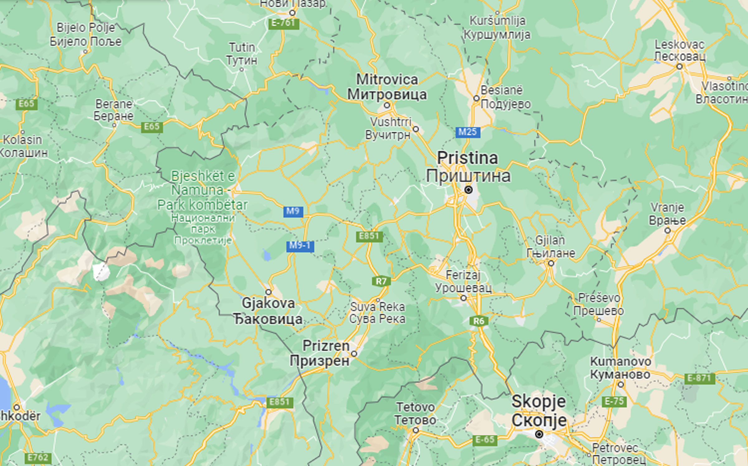 كوسوفو: هي دولة مستقلة معلنة ذاتيا في منطقة البلقان في أوروبا. وأعلنت استقلالها عن صربيا في عام 2008. اعترفت الولايات المتحدة ومعظم دول الاتحاد الأوروبي بكوسوفو كدولة مستقلة ذات سيادة. صربيا وروسيا والصين وبعض الدول الأخرى لم تفعل ذلك. يوجد في كوسوفو أربع دول مجاورة: مقدونيا وألبانيا وصربيا والجبل الأسود.