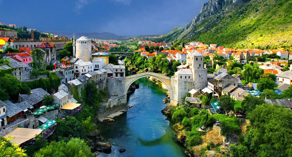 البوسنة و الهرسك: تقع في شبه جزيرة البلقان في جنوب شرق أوروبا. يعد ريفها موطنا لقرى و انهار و بحيرات تعود للقرون الوسطى . بالاضافة الى جبال الالب الصخرية . و تضم العاصمة سراييفو حيا قديما يعتبر من اعرق الاحياء القديمة حيث يوجد مسجد غازي خسرو باي الذي يعود الى القرن السادس عشر، و الجسر اللاتيني الذي يعود الى العصر العثماني و هو موقغ اعتيال الارشيدوق فرانز فرديناند الذي أشعل فتيل الحرب العالمية الاولى